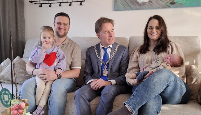 Foto met de burgemeester, Charlie Schel en zijn de trotse ouders en zusje.