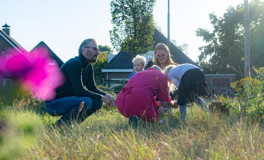 We begonnen met een project waar in de gemeente al ervaring mee is: groene daken. Dit zijn minituintjes op platte daken die regenwater langer vasthouden en een voedselbron zijn voor insecten. Binnenkort worden in de wijk al de eerste groene daken aangelegd. Het is een soort opwarmproject; we ontmoeten meer mensen die duurzaamheid een stapje verder willen helpen en krijgen tegelijkertijd het samenwerken beter in de vingers.”